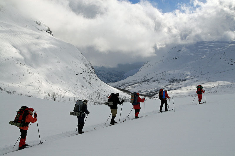 Vi startade i Spiterstulen, där Bente var bortrest, vilket gav oss lite problem vid incheckningen. Vi var inte väntade idag. Det löste sig dock, vi var dom enda gästerna, och kocken fixade till en utmärkt middag på torsk. Första dagen grydde med fint och varmt väder och vi njöt i fulla drag av skidturen upp till Leirvassbu. Smolk i bägaren var att vi tvingats lämna kvar Stig, som drabbats av ryggskott. Leirvassbu stod kvar, om än med nytt värdskap och gourmetmiddagarna var nog ett minne blott.