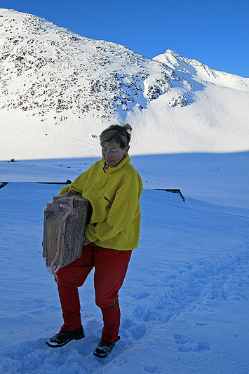 | Ved och vatten hämtas precis som i svenska fjällstugor .. | .. fast veden är färdighuggen |