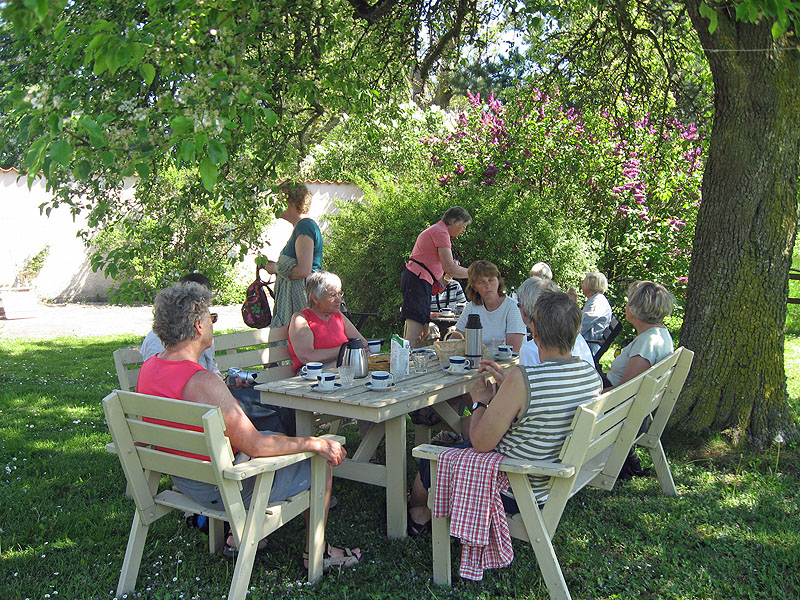 Efteråt fick vi kaffe med nybakta bullar i trädgården. Tack till Eva för den