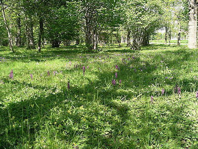 alla typiska växter, ädla lövträd och hassel, stora mängder St Pers nycklar