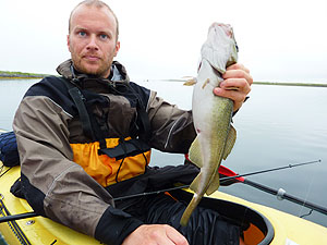 Vågöya för natten. På vägen tillbaka fiskade Olof en massa torsk, och vi