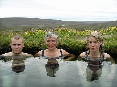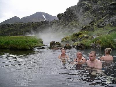 | Cold evening at the Landmannalaugar pool | Nice bath in the hot spring, flow of water, 70 degress, behind |