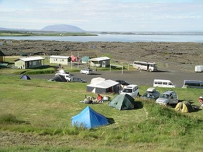 | Reykjahlíd camp site at Mývatn | New lava field at Krafla |