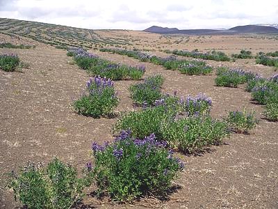 | Old lava pillars (klasar) at Höfdi | Lupins for preventing erosion