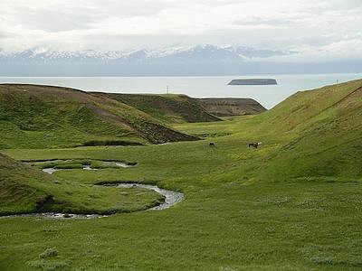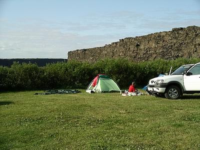 | "Valley of horses" north of Húsavík | Ásbyrgi camp site, beneath the strange canyon sides |