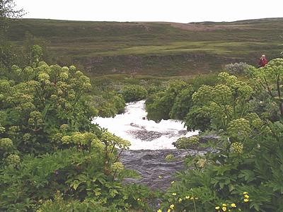 | Laugafell pool, an oasis in the desert | Lots of flowers around the pool |