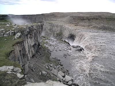 | Dettifoss dark, mighty, waterfall (from western side) | Dettifoss |