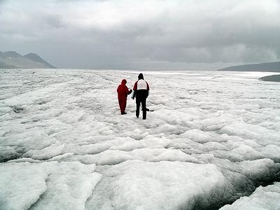 | A short walk on Skálafjellsjökull, at Jöklasel | Going back, looking out over Sudursveit and the sea |