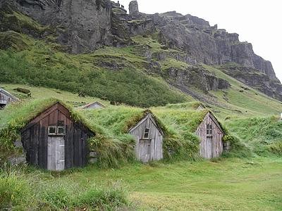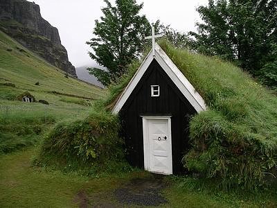 | The old houses at Núpsstadur | The church at Núpsstadur, still used |
