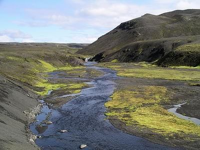 | Going on the Kjölur route | The pool at Hveravellir, fed by waterfall on silica ground |