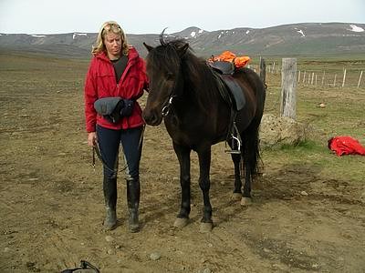 | Anna with one of her horses | Kerflingarfjöll volcanic area, colours, hot water and steam |