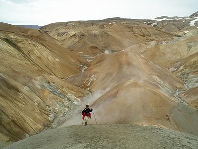 | Walking in the steep hills in Kerlingarfjöll area | |