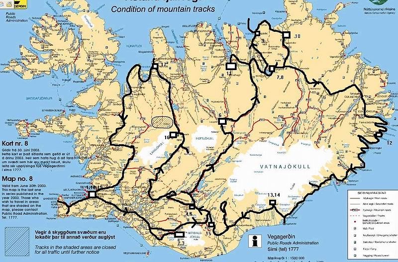 | the three main mountain routes crossing Sprengisandur, Kjölur and Kaldidalur and nice mountain routes around Mýrdalsjökull. | |