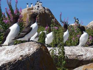 Vi fortsatte sedan i vågorna mot Viggskär där vi vadade genom kanalen i lågvatten med kajakerna på släp. Färden fortsattes mot Pargrundet också det en gammal känd tältplats för oss. Pargrundet fick sedan bli utgångspunkt för två utflykter. Den ena gick bort till Mulklobben för att titta på tordmular. Den turen blev ganska lång och slutade sedan vid Rönnskär där vi återsamlades. Dom som var med fick sitt lystmäte av Tordmular och Tobisgrisslor.