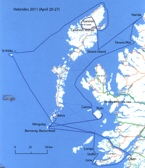 Caledonia. Before this boat trip we spent 6 days by car on the Scottish mainland and Isle of Skye, enjoying the beautiful Scottish landscape in spring time. Some photos, and a short description, is found here. We visited