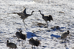 We visited this nice area at Hornborgasjön (Lake Hornborga) some days in the beginning of April 2012 (when some snow had fallen) and at the end of March 2021. We stayed at some local places and mainly visited the lake for watching the huge amount of cranes, but also looked at some historical places around. At Lake Hornborga tens of thousands of cranes gather on their way from southern Europe to the northern parts of Sweden. After restoration in the second half of the 1900’s, the lake is a suitable place. In earlier days, potatoes were grown in the fields and eaten by the cranes but nowadays barley is grown. In order to avoid damage to the crops of the farmers, barley is spread out on the fields close to the lake in the evenings when the cranes leave the fields for spending the night on the lake. The surrounding plateau mountains create thermal winds making it easier for the cranes to lift. At the lake the cranes stay some time, before continuing north. They find partners, and the male and female perform nice dancing before breeding. There is also a lot of other birdlife in the lake, e.g. Whooper swans and geese. The cranes gather at the southern part of the lake, where there are also viewing points and an Info center Trandansen. You can come rather close to watch the cranes and hear the massive sound. Before sunset the cranes leave the fields in large groups for spending the night on the safe place on the lake. At sunrise they return to the fields. There are normally most cranes at the lake in the last week of March and the first week of April, normally around 15 000 to 20 000 (the record is 27 300 April 3rd 2019). Depending on temperature and winds, the times can vary. Using the links below, you can see statistics for the last years. At the eastern part of the lake, there is a Naturum visitor centre with trails. There are no cranes here, but a lot of other birds. In the surroundings there are a lot of historical places. The Varnhem and Gudhem monastery ruins and churches originate from around 1150. The Crusades Trilogy with the main character Arn Magnusson, written by Jan Guillou, is inspired from these areas. Useful links: