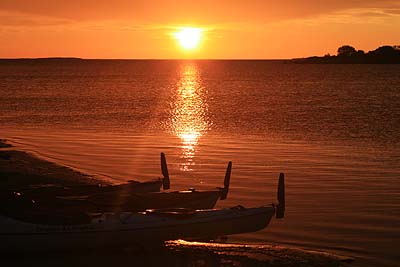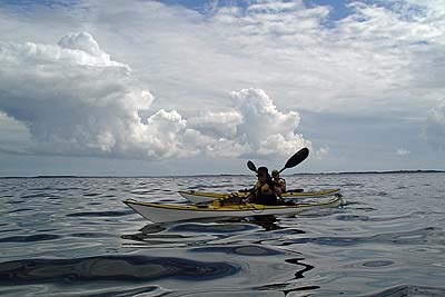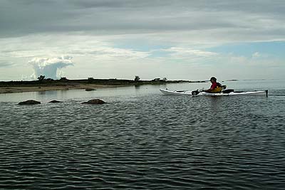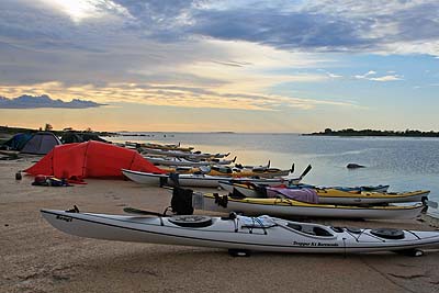 glasskulorna. På kvällen paddlar vi sedan en dryg mil österut, från början lugnt