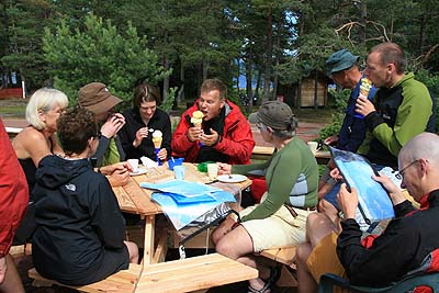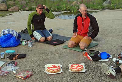 tältplatsen med att bjuda alla på gräddtårta och efter en sedvanlig övandring,