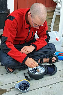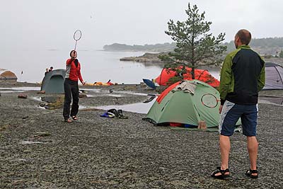 | Gustaf torkar kläder | Inte så vanligt med badminton på kajakturer |