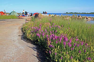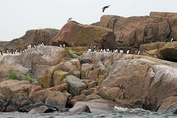 tordmular på klipporna och i luften. På öarna är det en väldig blomsterprakt.
