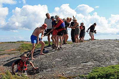 stora, släta hällar. Den ena gruppen far via Väderskär, dock utan att hitta