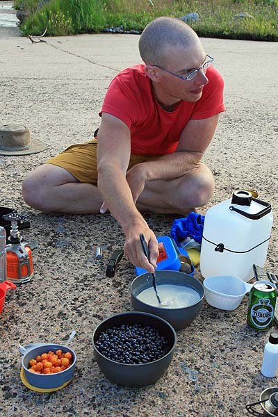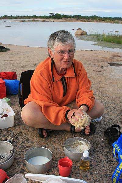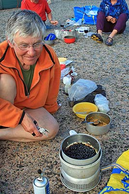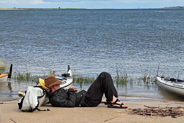 njuter av kaffe och lunch på släta klippor samt en avslutande tältplats på