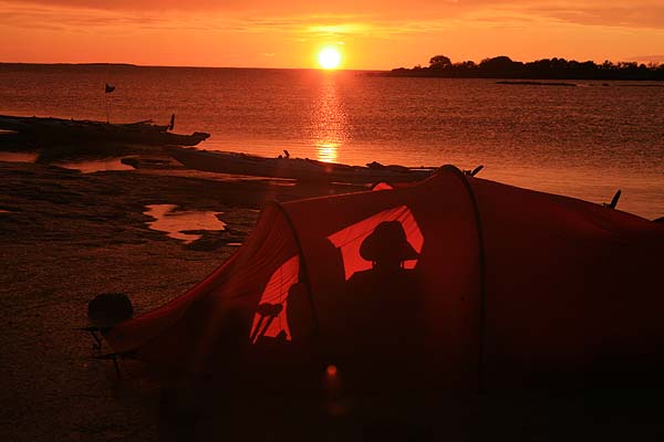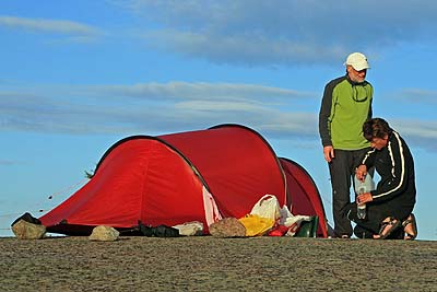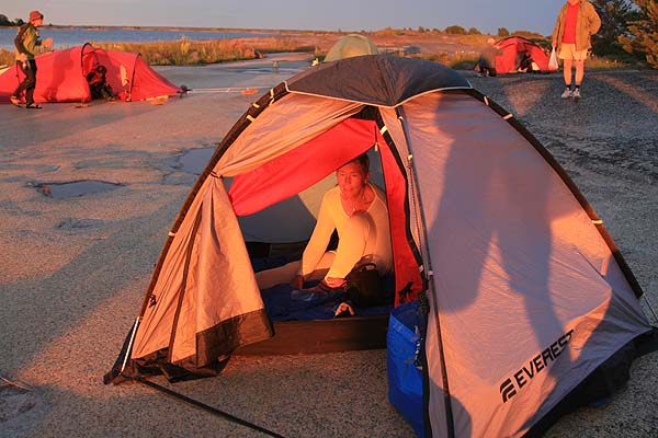 men sedan en del vågor, för att hitta en bra tältplats för att komma i läge för